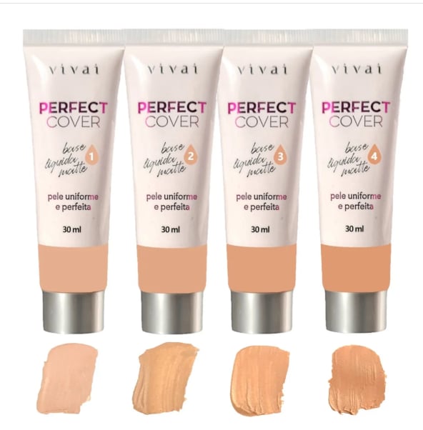 A Base Perfect Cover da Vivai tem efeito Matte e deixa a pele uniforme e perfeita.